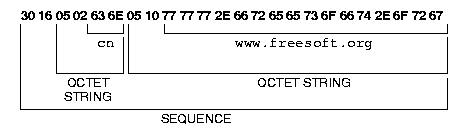 For example, here's a sample ASN.1 definition from the LDAP protocol, using the ASN.1 primitive OCTET STRING, and the constructor SEQUENCE. The placement of ::= symbols, comments, and braces are all defined by the ASN.1 grammer.